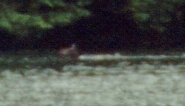 Moose SwimmingMonday morning May 24, 1999 this moose swam half way down the arm then turned around and swam back when a boat approached it. ![]() This is an extreme blow up of a picture taken when the moose was on the far side of the arm. Lauren (4) was the first to see it. She called her parent's attention to it saying "there's a Walrus in the lake". |